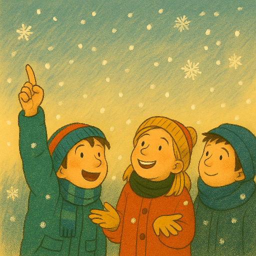 I tak oto, snując plany lepienia bałwana, budowania igloo i bitwy na śnieżki, trójka przyjaciół rozeszła się do domów. Ku ich wielkiemu zadowoleniu, śnieg nie przestawał padać…